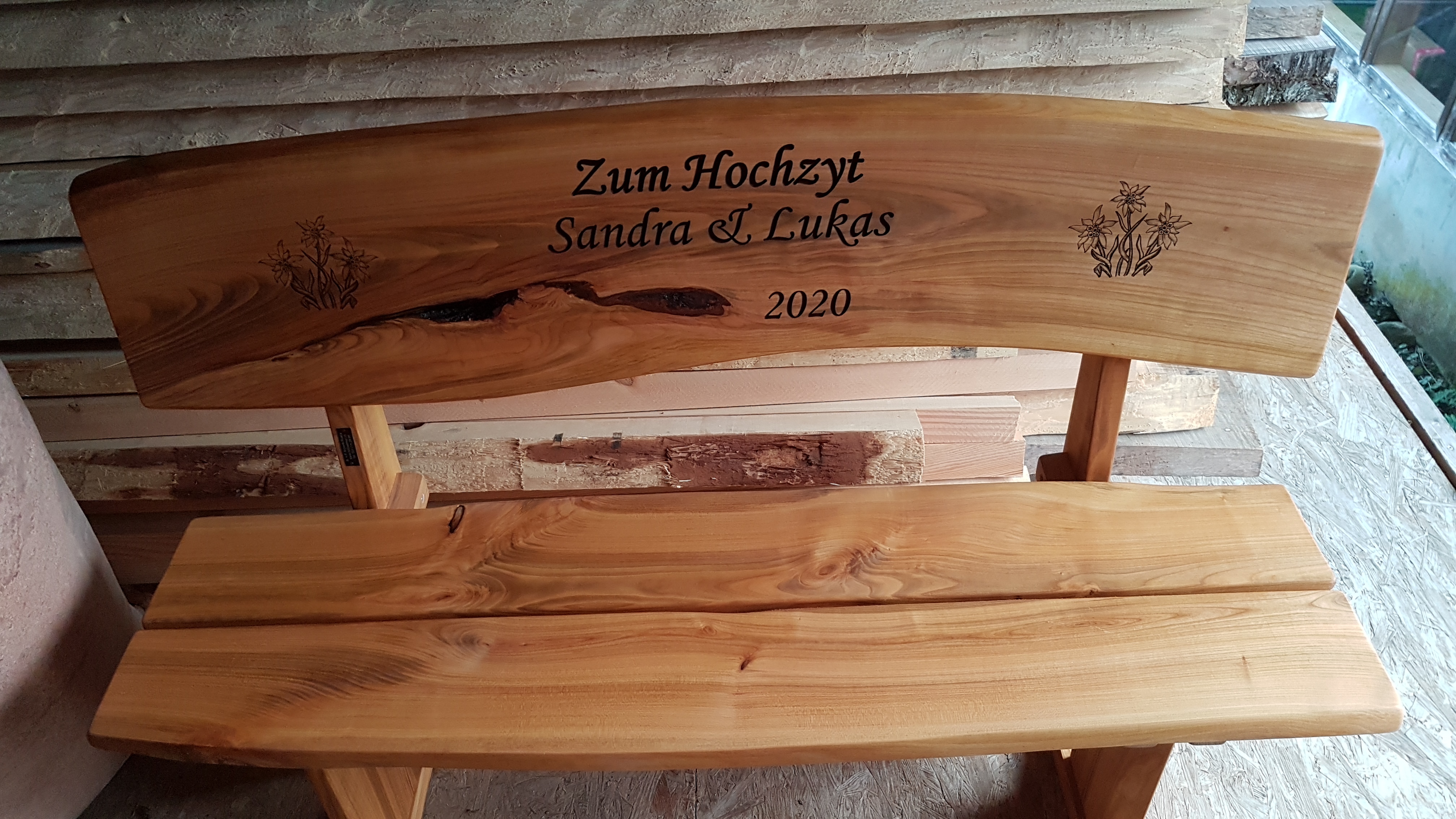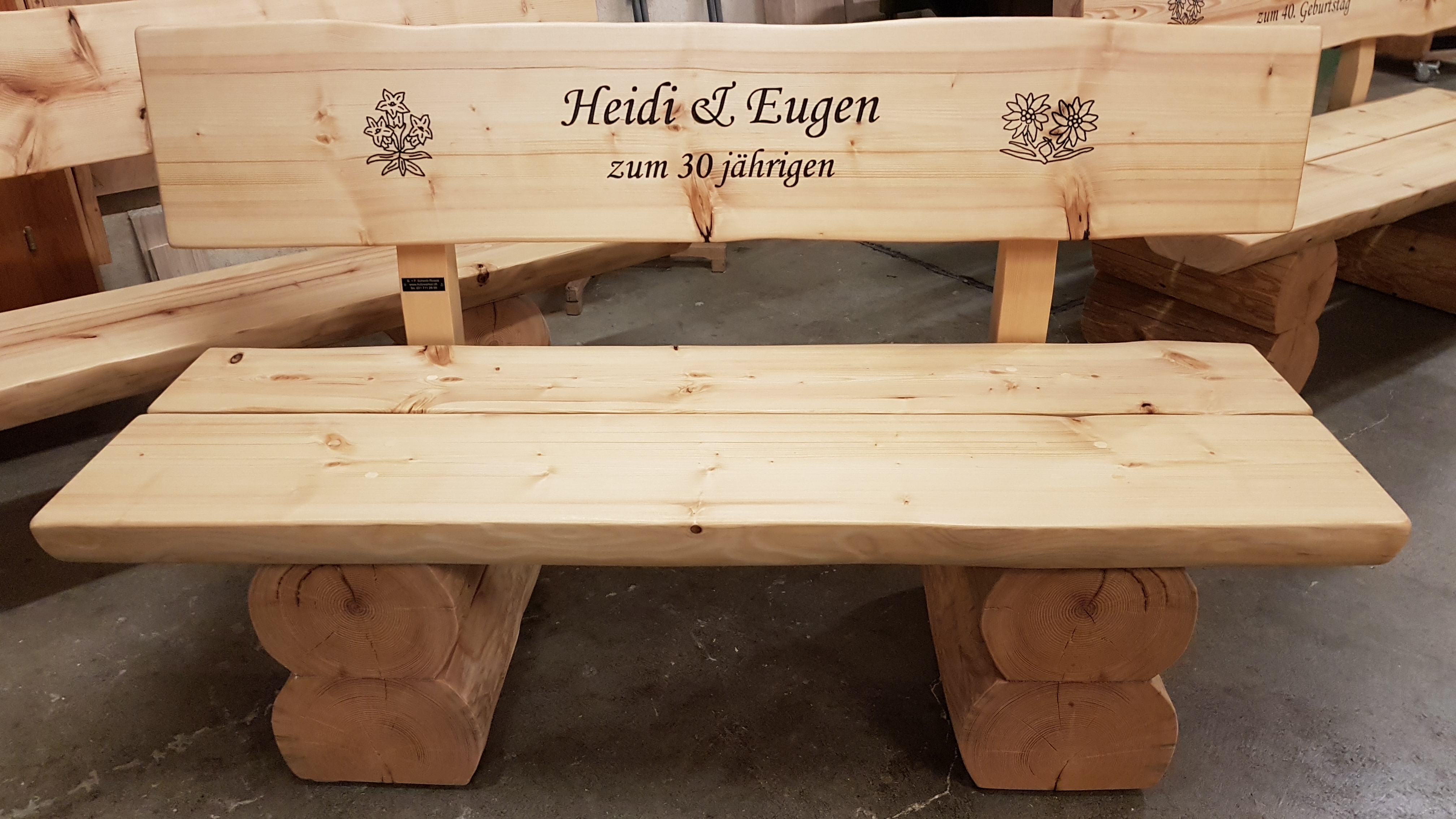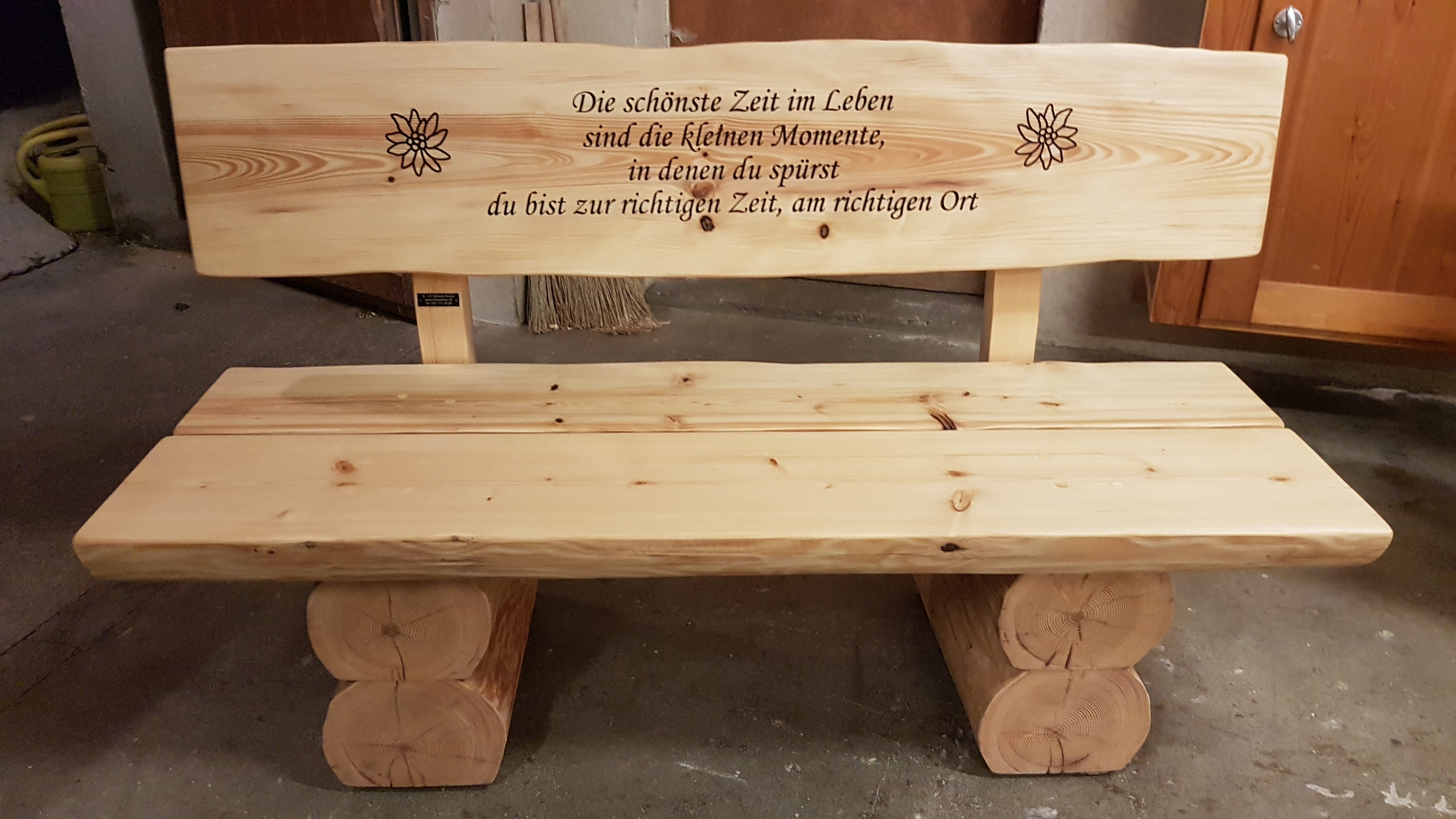 Bänke Modell Rustikal 1.5m lang mit gravierter Schrift